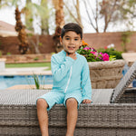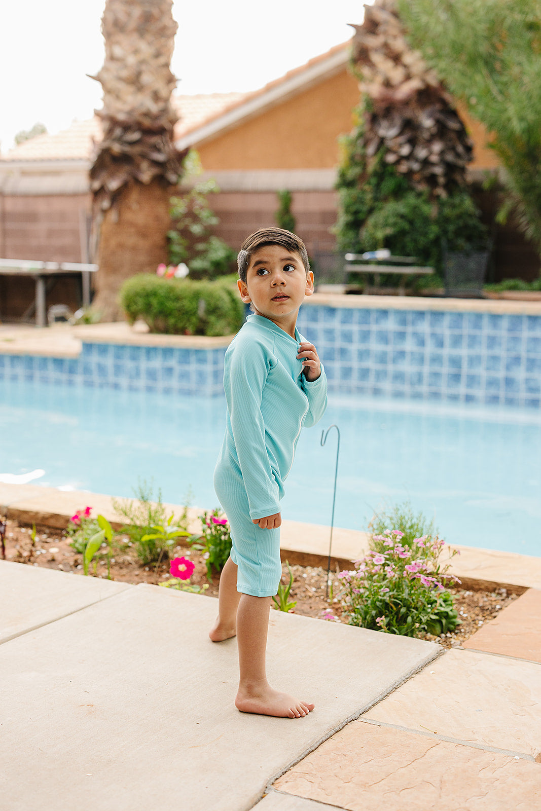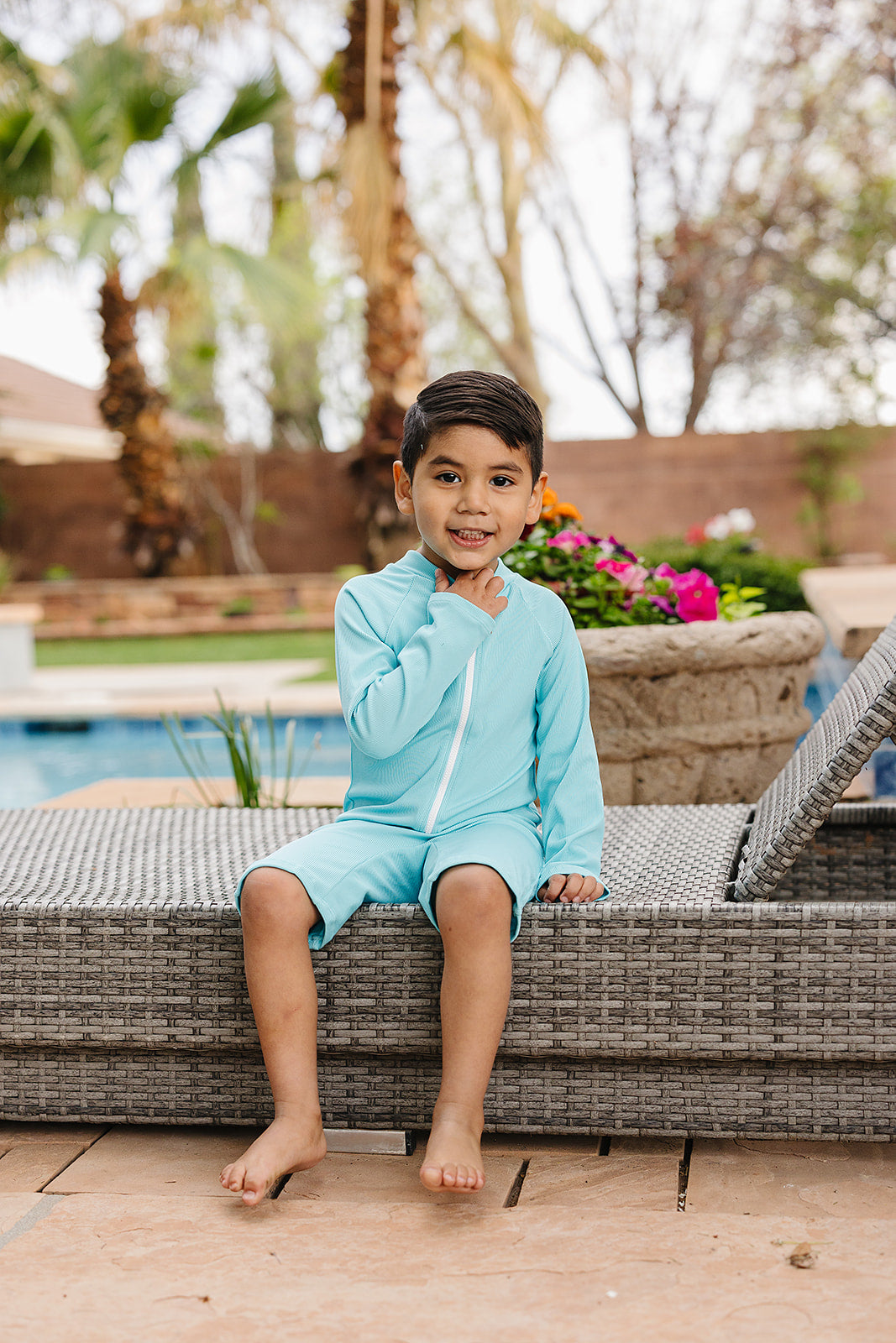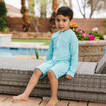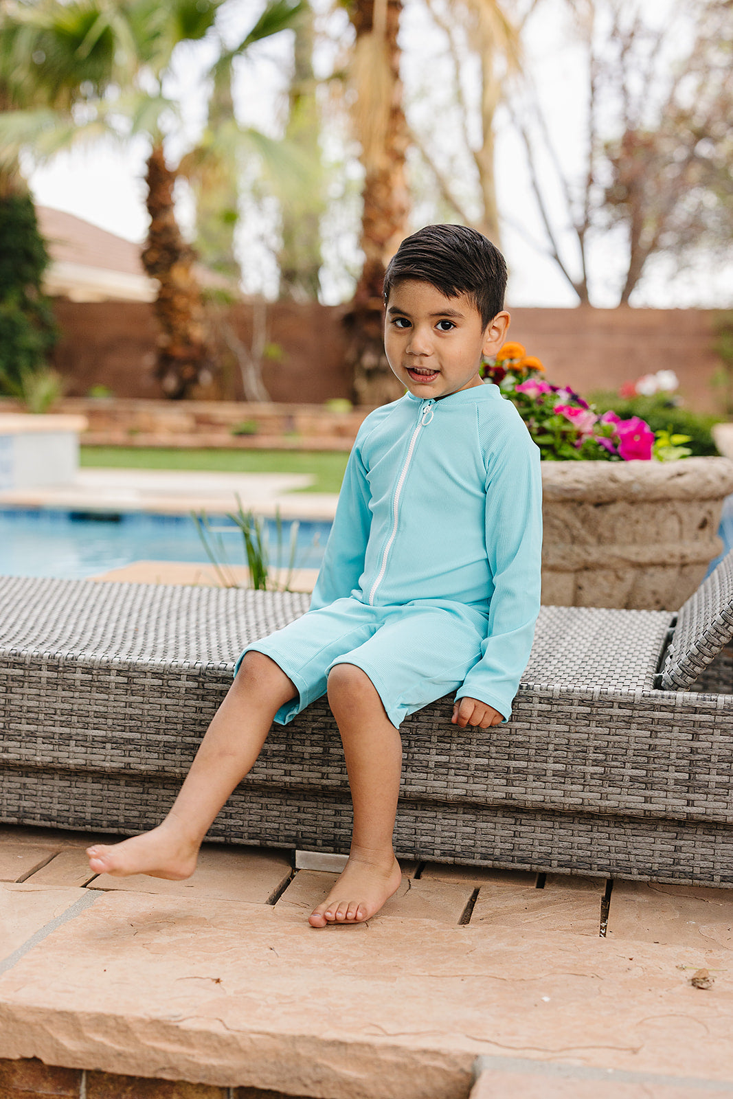 Keep your child safe from the sun without compromising on style! Our popular sunsuits combine the full protection of a RashGuard with play friendly shorts into a convenient one piece swimsuit. The lengthened YKK zipper ensures these suits are easy on and off, with zipper pulls perfectly designed for little fingers. Potty breaks are a breeze! Our suits are fully reversible allowing for zipper wear at the front or back, and help empower your little ones to dress and undress themselves!