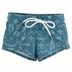 Soft, light and breathable - these boardies combine comfort and style into one. Our Euro style design hits mid thigh on the front and lower leg on the back for better coverage. Inside you will find an ultra comfortable mesh liner and active drawstring for the perfect fit. Our design can size up very well for longer wear, otherwise they will fit TTS. Easy on, easy off your little ones will look good and feel better in these ultra comfortable shorts! Gender neutral in design, these are a great full coverage option for the girls and boys in your life!