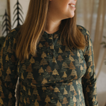 When loungewear meets Holiday Pajamas! These are the PJs you will all be reaching for all year round. Our adult sets feature a 3 button Henley Top with straight cut jogger bottom. Our women's sets are a fitted style with slim cut pants paired with a lengthened top. The fit is true to size, with lots of beautiful stretch woven in.