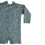 Keep your child safe from the sun without sacrificing style with our popular sunsuits! These one-piece swimsuits combine UPF 50+ protection of a rashguard with play-friendly shorts, making them perfect for all-day wear in and out of the water. Our ykk Zippers are designed for little fingers, ensuring easy potty breaks and wardrobe changes. Fully reversible, they can be worn with the zipper at the front or back for added versatility.