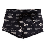 The "Axel" print features minimalist, hand-sketched fish on a soft matte black background—bold yet subtle, a print you'll both love.