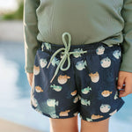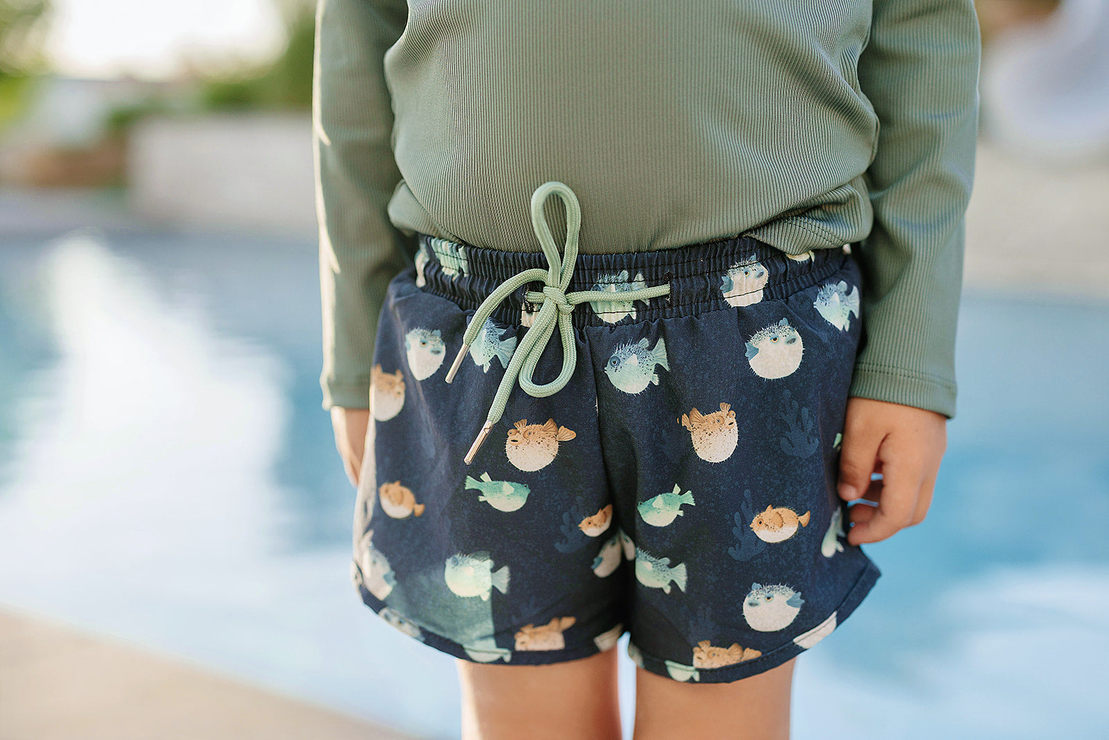 Soft, light and breathable - these boardies combine comfort and style into one. Our Euro style design hits mid thigh on the front and lower leg on the back for better coverage. Inside you will find an ultra comfortable mesh liner and active drawstring for the perfect fit. Our design can size up very well for longer wear, otherwise they will fit TTS. Easy on, easy off your little ones will look good and feel better in these ultra comfortable shorts! Gender neutral in design, these are a great full coverage option for the girls and boys in your life!