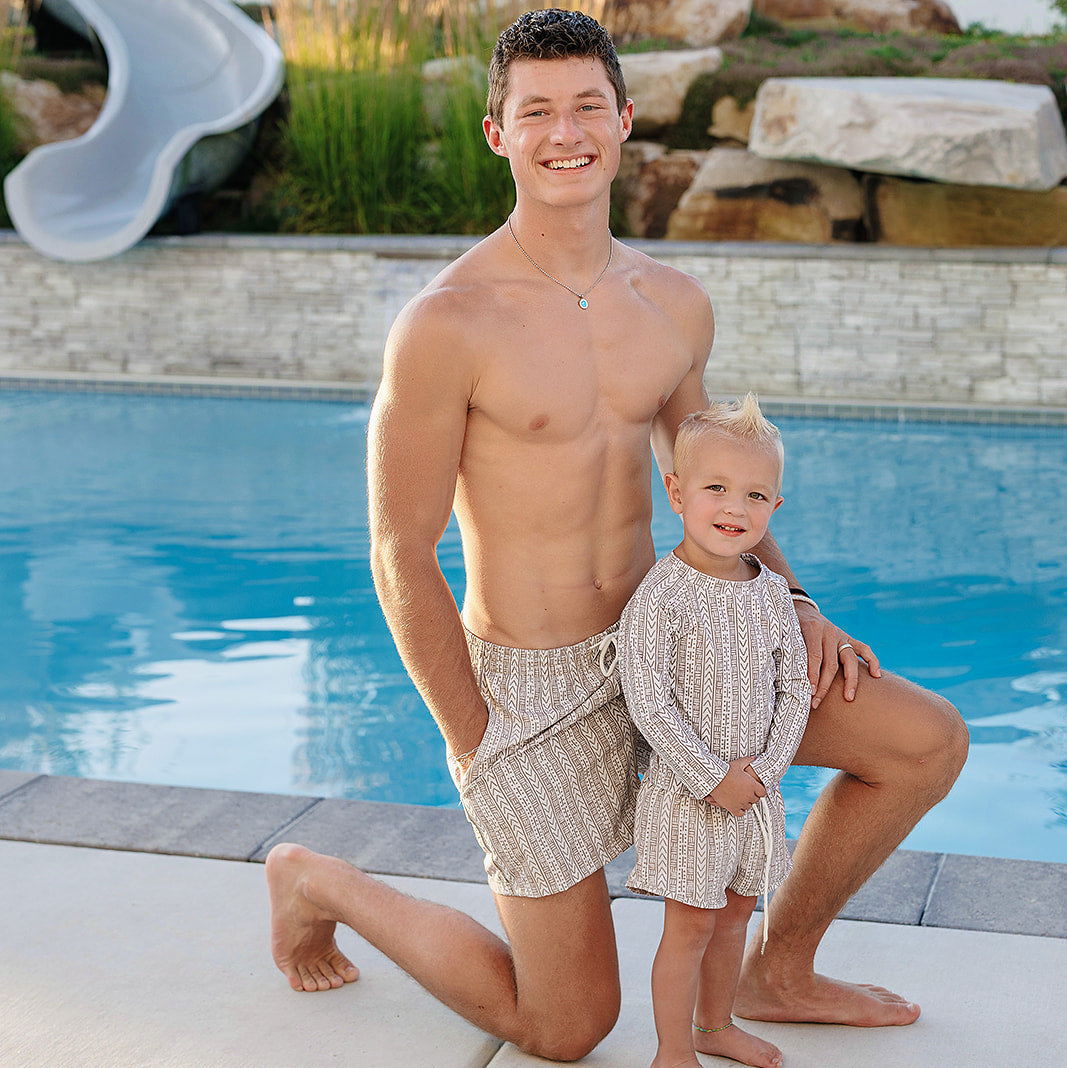 Our Men’s Trunks are designed with no compromises—crafted to be your go-to swim short for style, comfort, and performance. Made from the same luxuriously soft, stretch-infused fabric as our children’s boardies, these trunks offer UPF 50+ sun protection while remaining completely chemical-free.