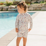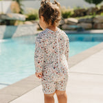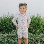 Keep your child safe from the sun without sacrificing style with our popular sunsuits! These one-piece swimsuits combine UPF 50+ protection of a rashguard with play-friendly shorts, making them perfect for all-day wear in and out of the water. Our ykk Zippers are designed for little fingers, ensuring easy potty breaks and wardrobe changes. Fully reversible, they can be worn with the zipper at the front or back for added versatility.