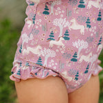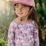 Whimsical and dreamy, The "Kinsley" features hand-drawn unicorns prancing through a magical forest of blooming trees, mushrooms, and florals. Soft blush and earthy tones bring this enchanting scene to life — perfect for little ones and full family matching moments. This base is an exact tonal match for our Berry hat, and pairs beautifully with all of our Pinks + Purples.