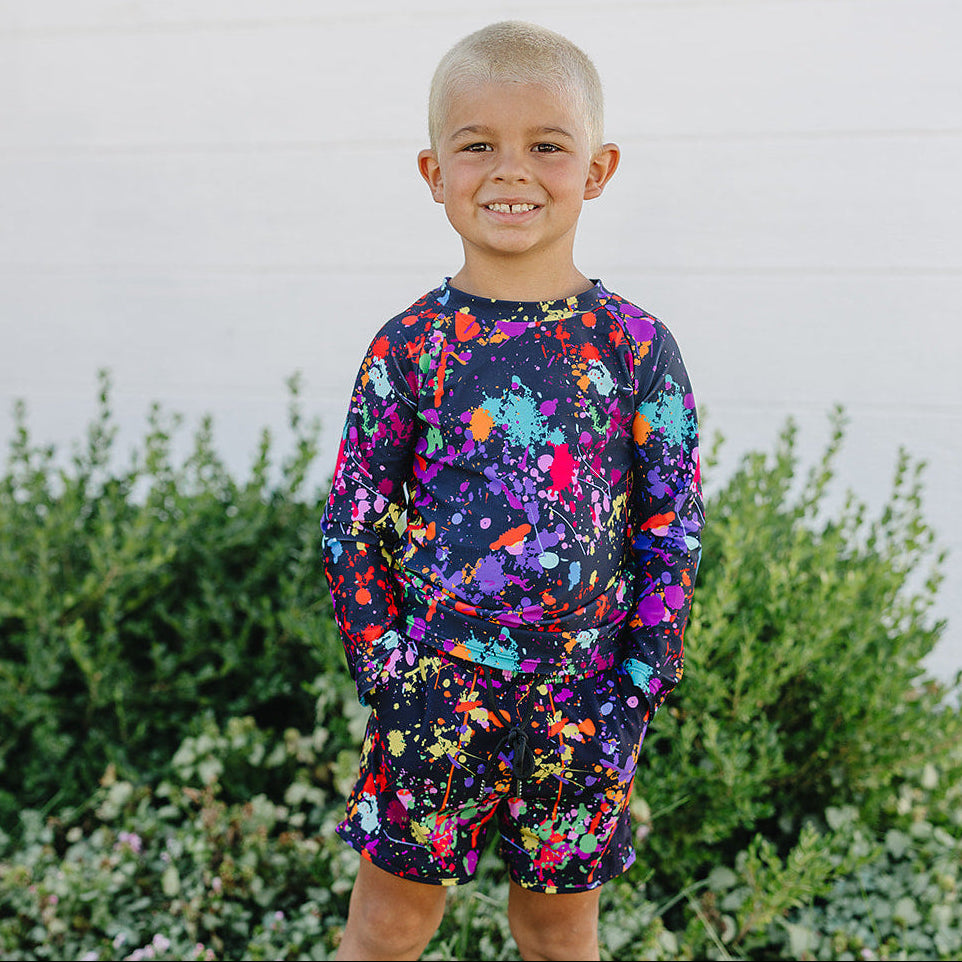Bold, playful, and full of personality — The Reign is a full family matching print designed for the Brights Collection. Featuring neon splatter paint on a deep navy base, it brings an explosion of color and creativity to every outfit. Made for fun-loving families who love to stand out together! Wear it alone, or mix and match with any of our neons for the best high visibility pairing of the season.