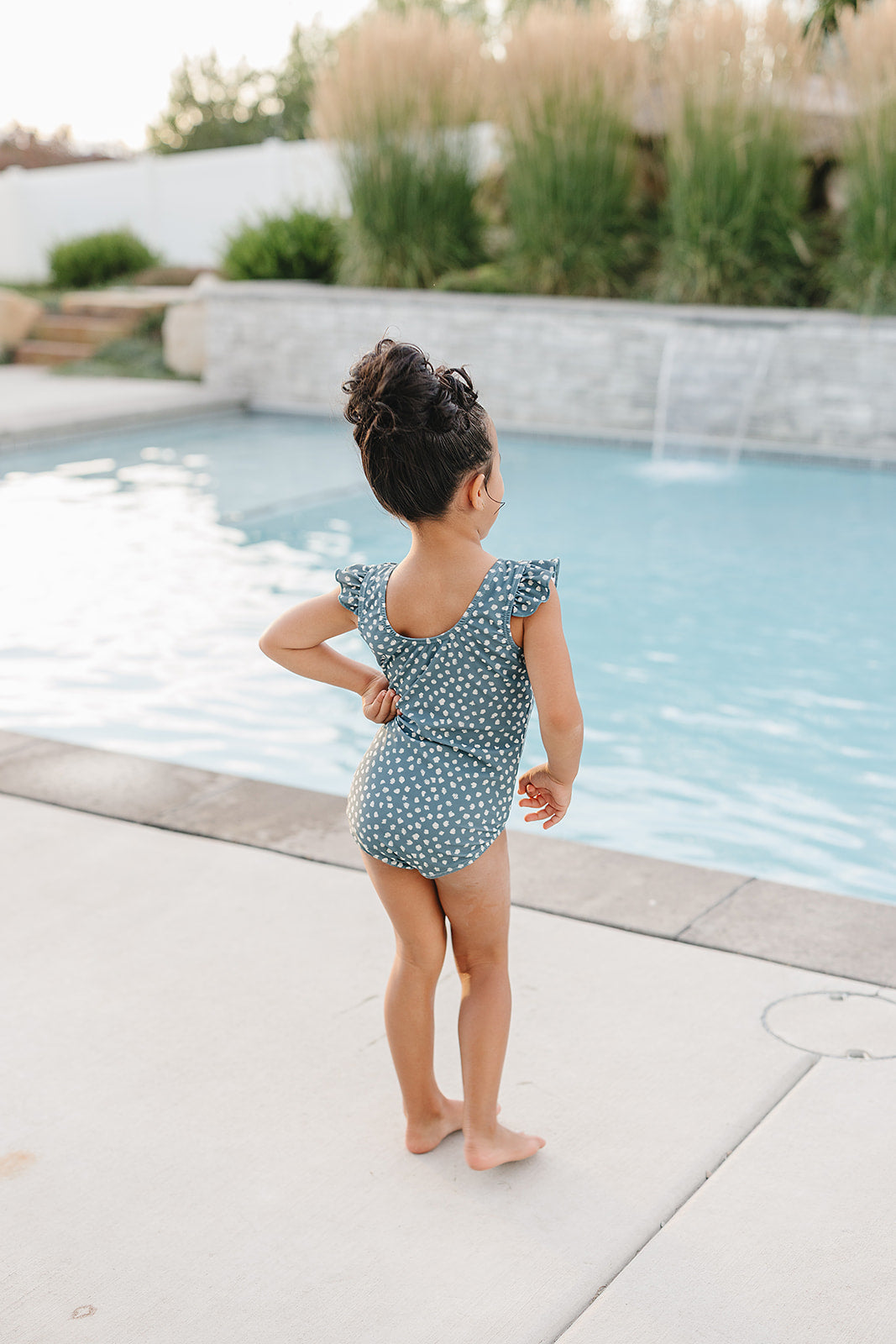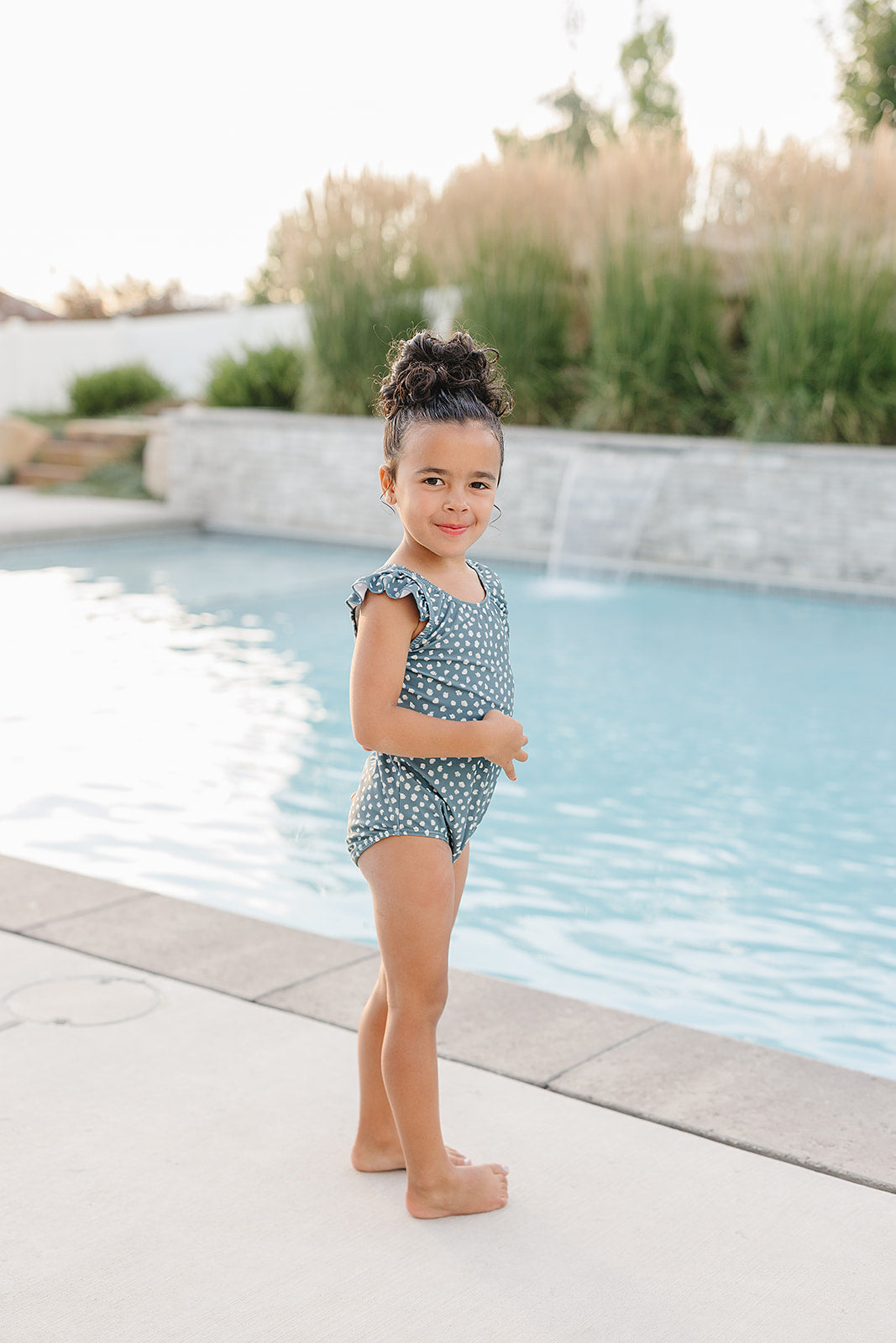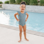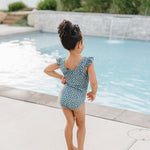 Our Ruffle Shoulder One Piece swimsuit features Chemical Free UPF 50+ Protection in the sweetest swimsuit design around. The body of our swimsuits are fully lined for modesty, with a soft inner liner. We conviniently added snaps to our infant sizes up to size 12/24m for easy diaper changes. The outer shell of the suit is made from an ultra soft + breathable Lycra fabric providing 4-way stretch for all day comfort and play.